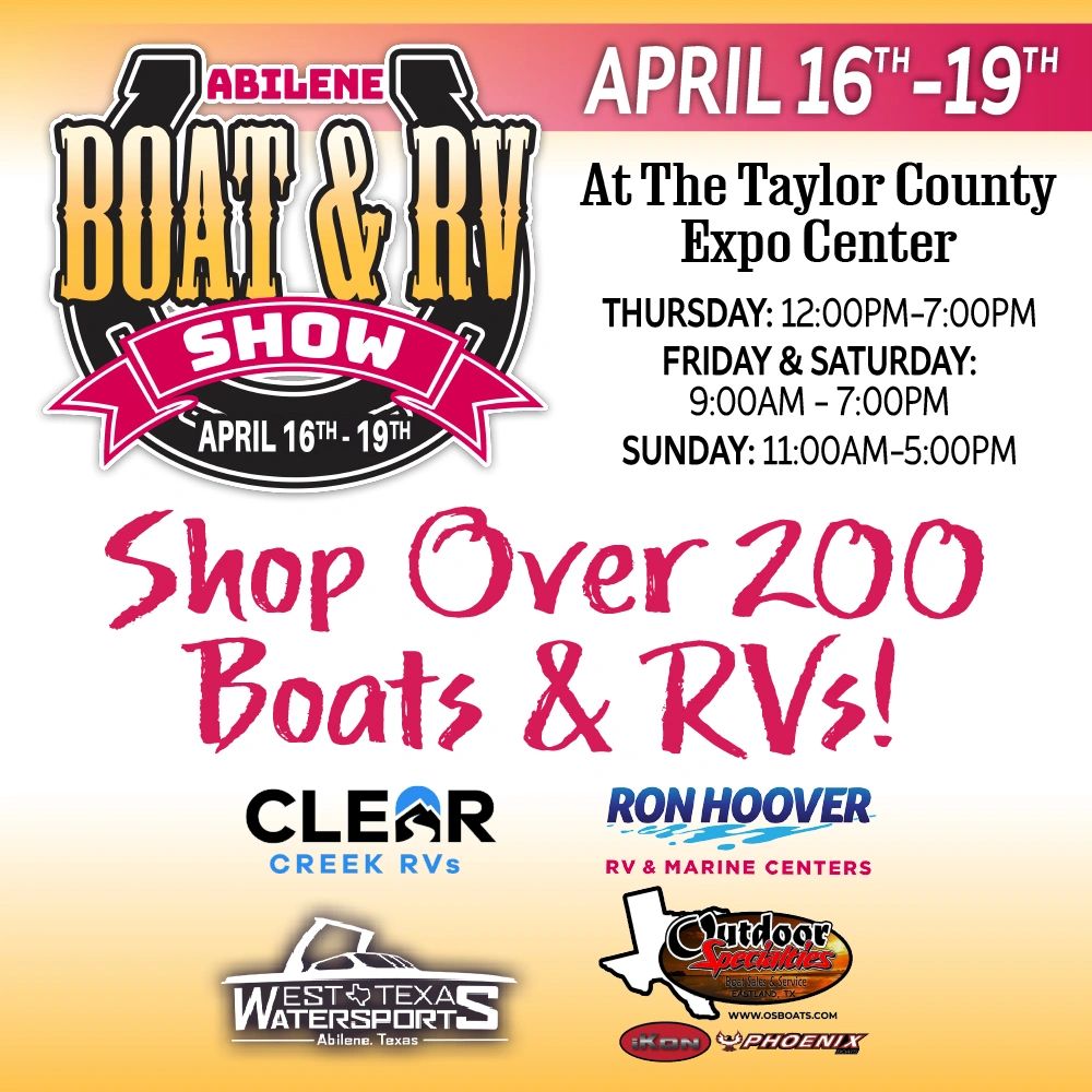 DON'T MISS THE ABILENE BOAT AND RV SHOW, HAPPENING APRIL 16th-19th 2026 AT THE TAYLOR COUNTY EXPO CENTER!